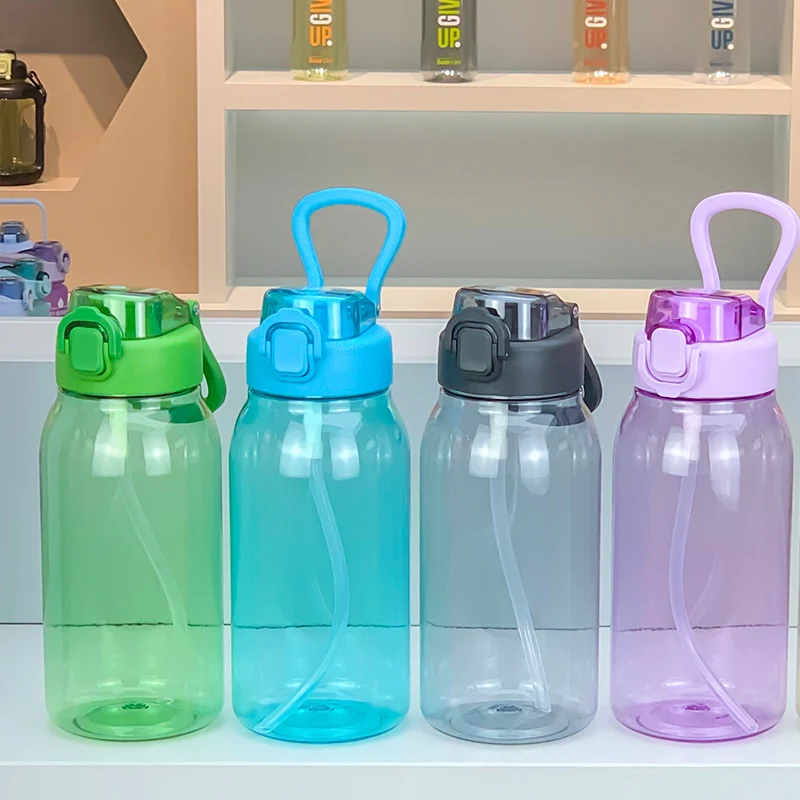1000ml Big Capacity Fitness Gym Water Bottles with Straw Convenient Carry for Outdoor Festivals Plastic Drinkware