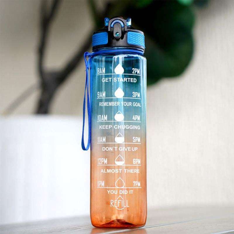 1000ml Gradient Plastic Water Bottle with Straw and Carry Rope for Camping and Boiling Water