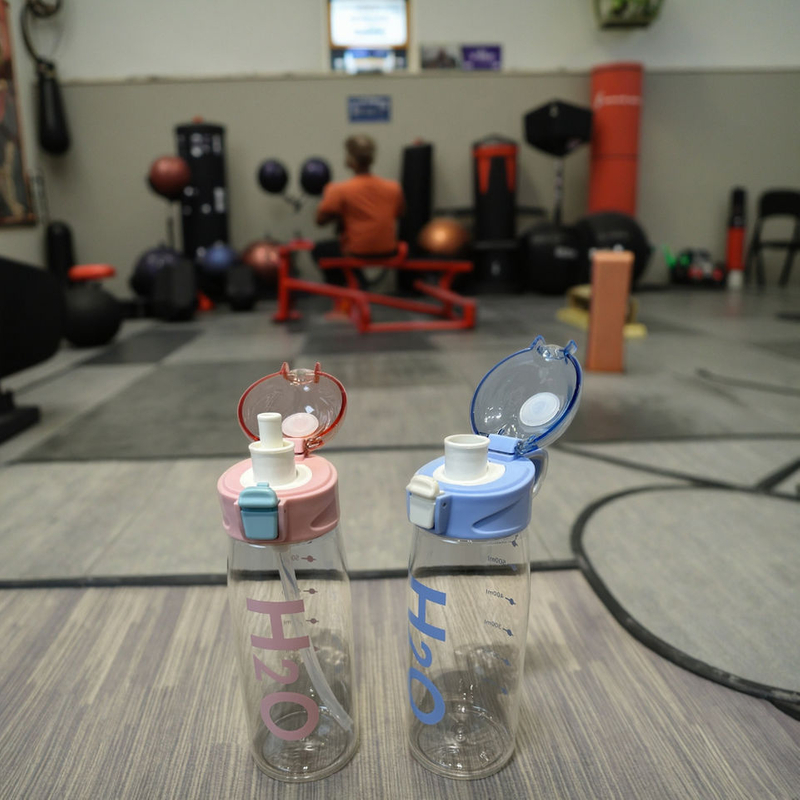 Home » Products » Plastic Water Bottle » 500~1000 ML » Creative Colorful Sports Plastic Drink Bottle Portable Handle Straw for Children's Outdoor Activities Camping Made Durable
