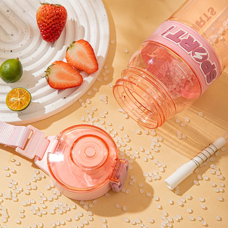 Home » Products » Plastic Water Bottle » 0-2000ML » Wholesale 2025 800ml BPA Free Sports Water Bottle for Kids Motivational Design with Straw for Camping